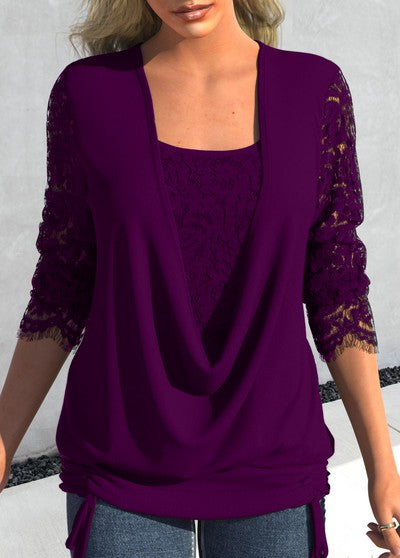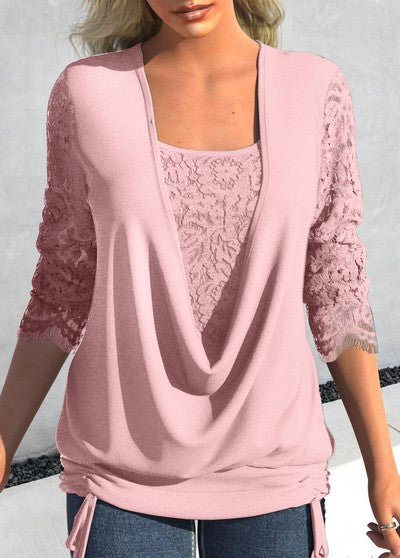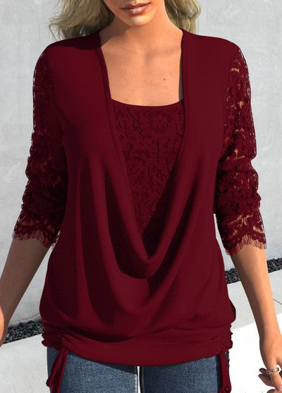 2023 Laza fazonú, hosszú ujjú csipke póló