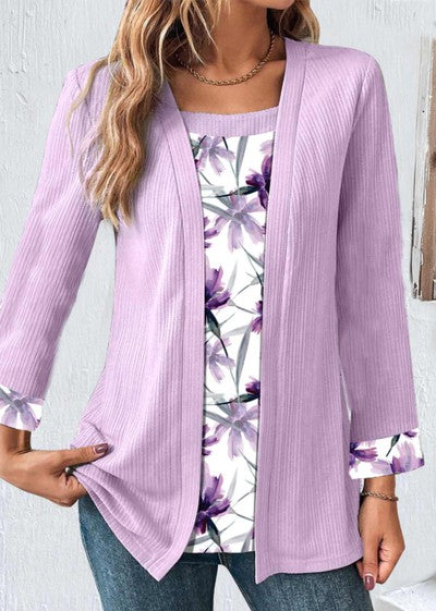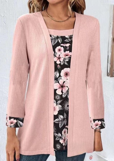 Hamis kétrészes nyomtatott hosszú ujjú póló