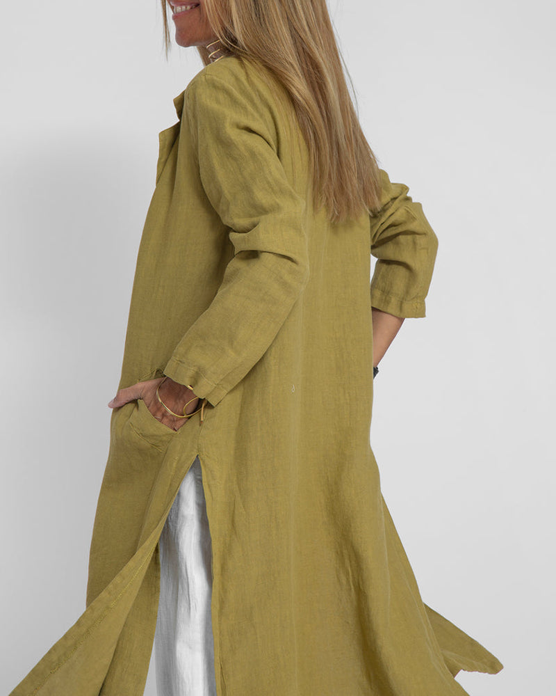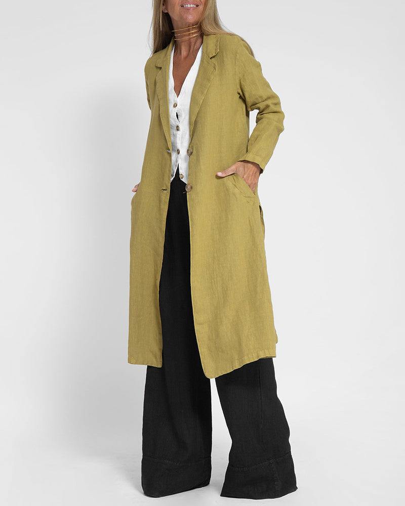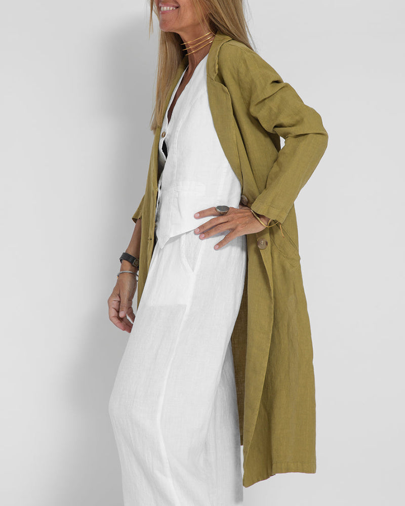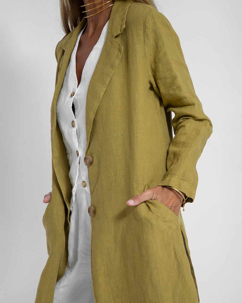 Alkalmi karcsúsított, hosszú gallérú kabát füles zsebekkel