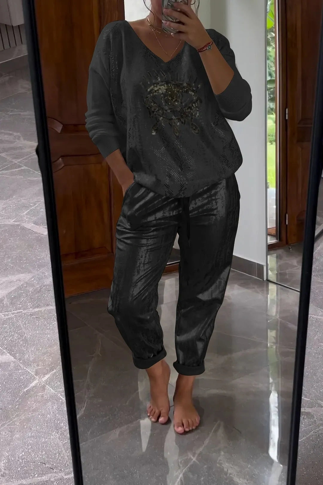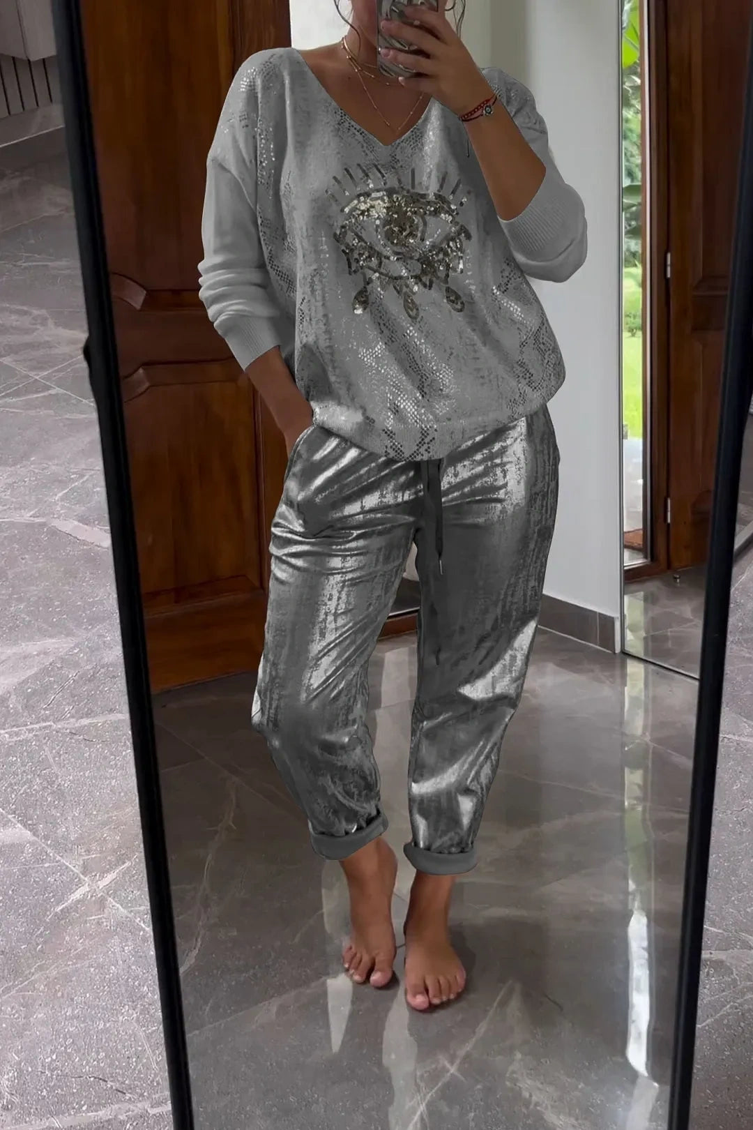 Kétrészes flitter szett bronz nadrággal
