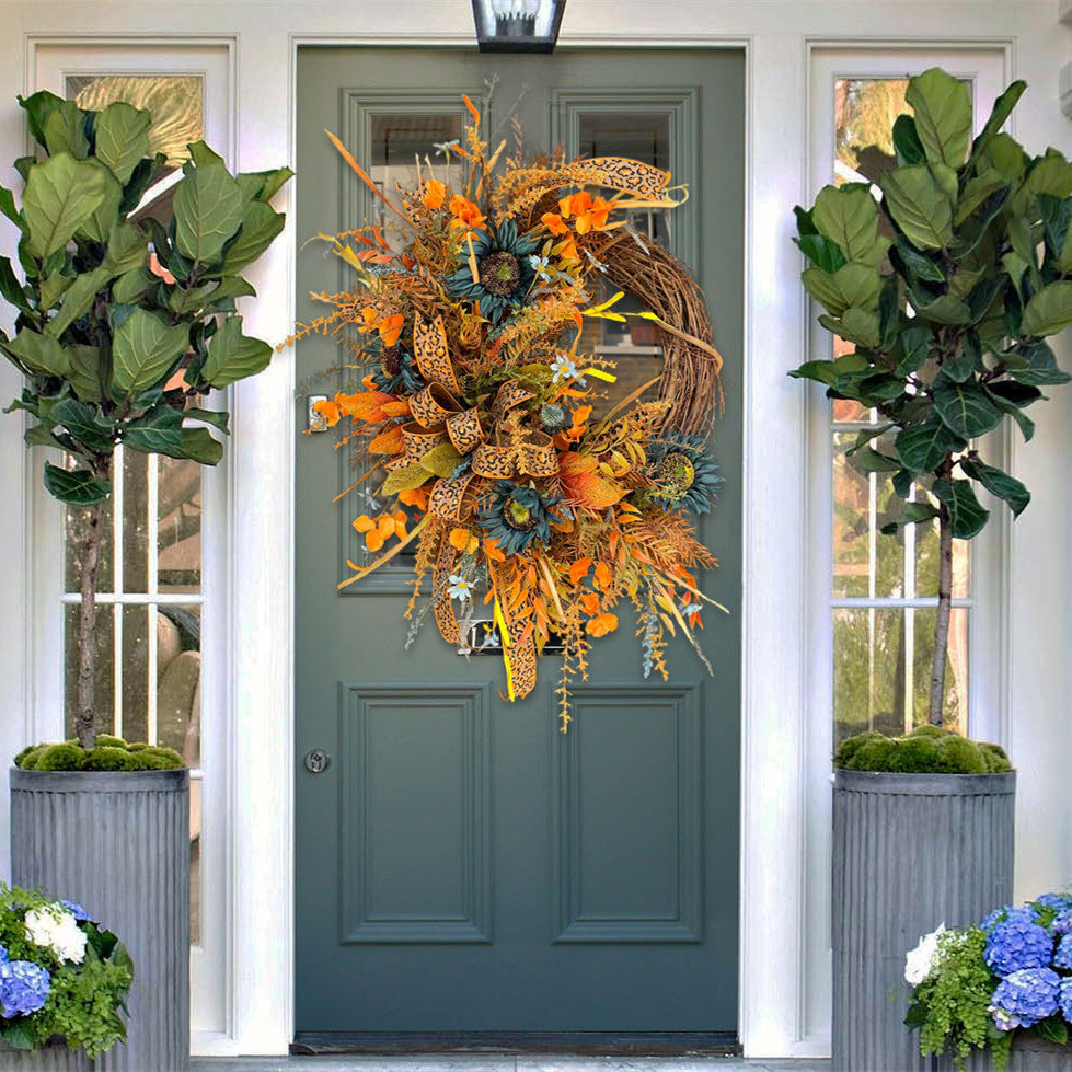 Fókusz: Kézzel készített👋 📐Méret: Hozzávetőleges méretek: 28”H x 24”Sz x 4”M (végtől a végéig mérve). 18”-os szőlőkoszorúra tervezték.) 🍂Tökéletes ajándék : Ez a gyönyörű bejárati ajtós napraforgókoszorú tökéletes barátok vagy családtagok számára! Jellemzők: 🍂 A szép napraforgókkal díszített koszorú és a kalikó virágmintás masni alkalmi varázsa tökéletes az őszi dekorációhoz. 🍂Az egyedi levelek és szőlők kombinációja még több francia vidéki varázst ad hozzá. Az édes zöld napraforgó