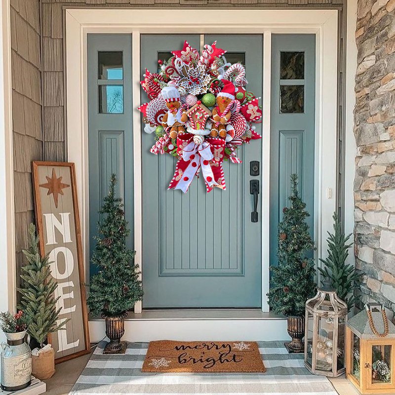 🎅🥳 Dreaming Christmas Lollipop CANDY piros és fehér színben... ..szeszélyes részletek, friss dekoráció, ez a koszorú csodálatos~🍭 és azt fogod mondani, hogy "többet akarok".