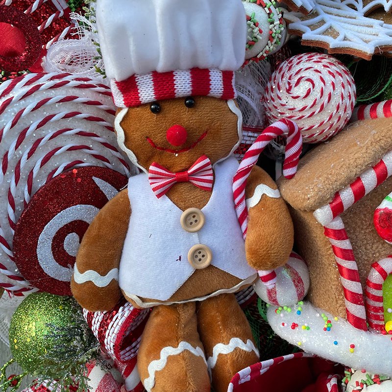 🎅Anyagok: örökzöld alap, csillogás, háló, tervező drótszalag, karácsonyi díszek, mézeskalács plüss figurák