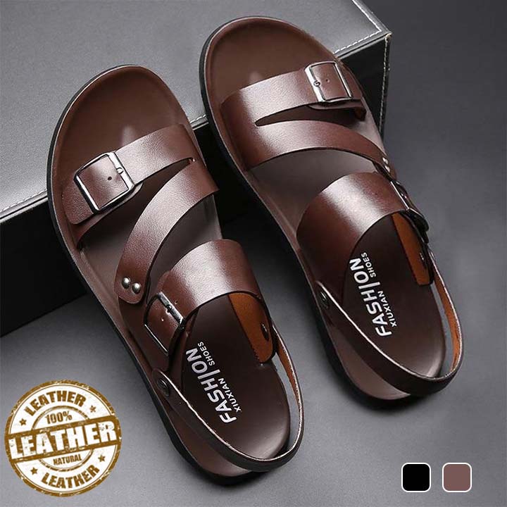 Egy pár bőr szandál, amely ellazul és kényelmesen biztosít egész nyáron.
