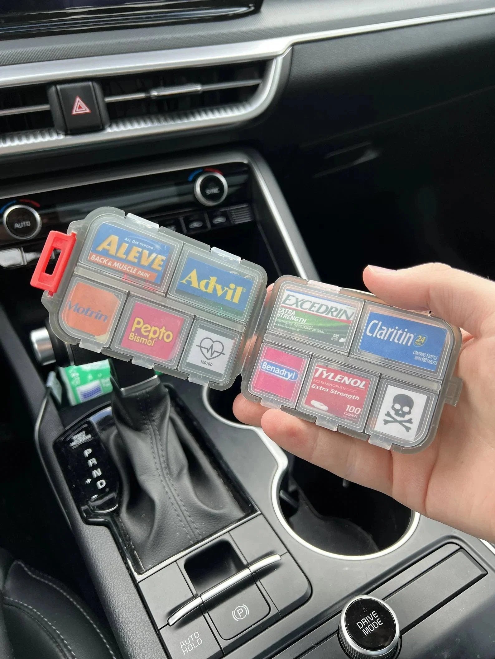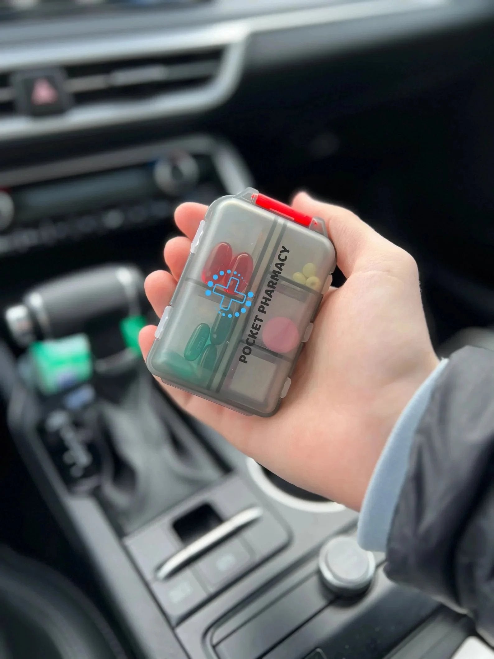 A Pocket Pharmacy tökéletesen elfér zsebében, pénztárcájában vagy utazótáskájában. Több rekesze van, amelyek címkékkel testreszabhatók, így könnyedén rendezheti és azonosíthatja a tablettákat.