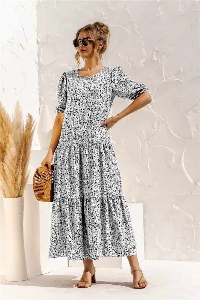 Kockás, felfújt ujjú, lépcsőzetes ruha