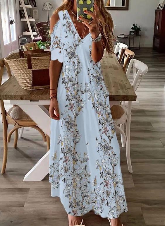 Hosszú csipkeruha, rövid ujjú mintával