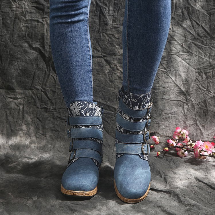 Női vintage mintás meleg vízálló bőrcsizma