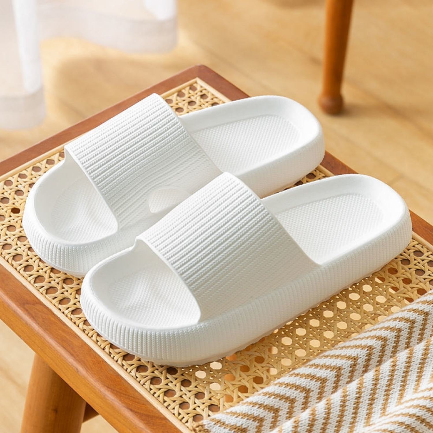 A Slippers™ csúszásmentes, texturált anyagból készült, amely megakadályozza a csúszást és az elesést , valamint megakadályozza a láb kiesését.Ezenkívül a Schlappys™ használatával nem tapasztal dörzsölést vagy felhólyagosodást .