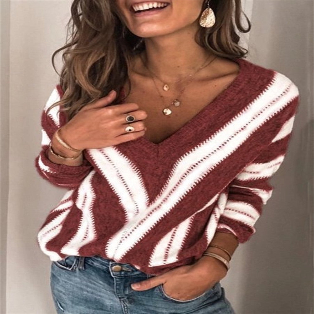 Őszi-téli temperamentumú ingázó pulóver női kötött európai és amerikai bő, hosszú ujjú V-nyakú