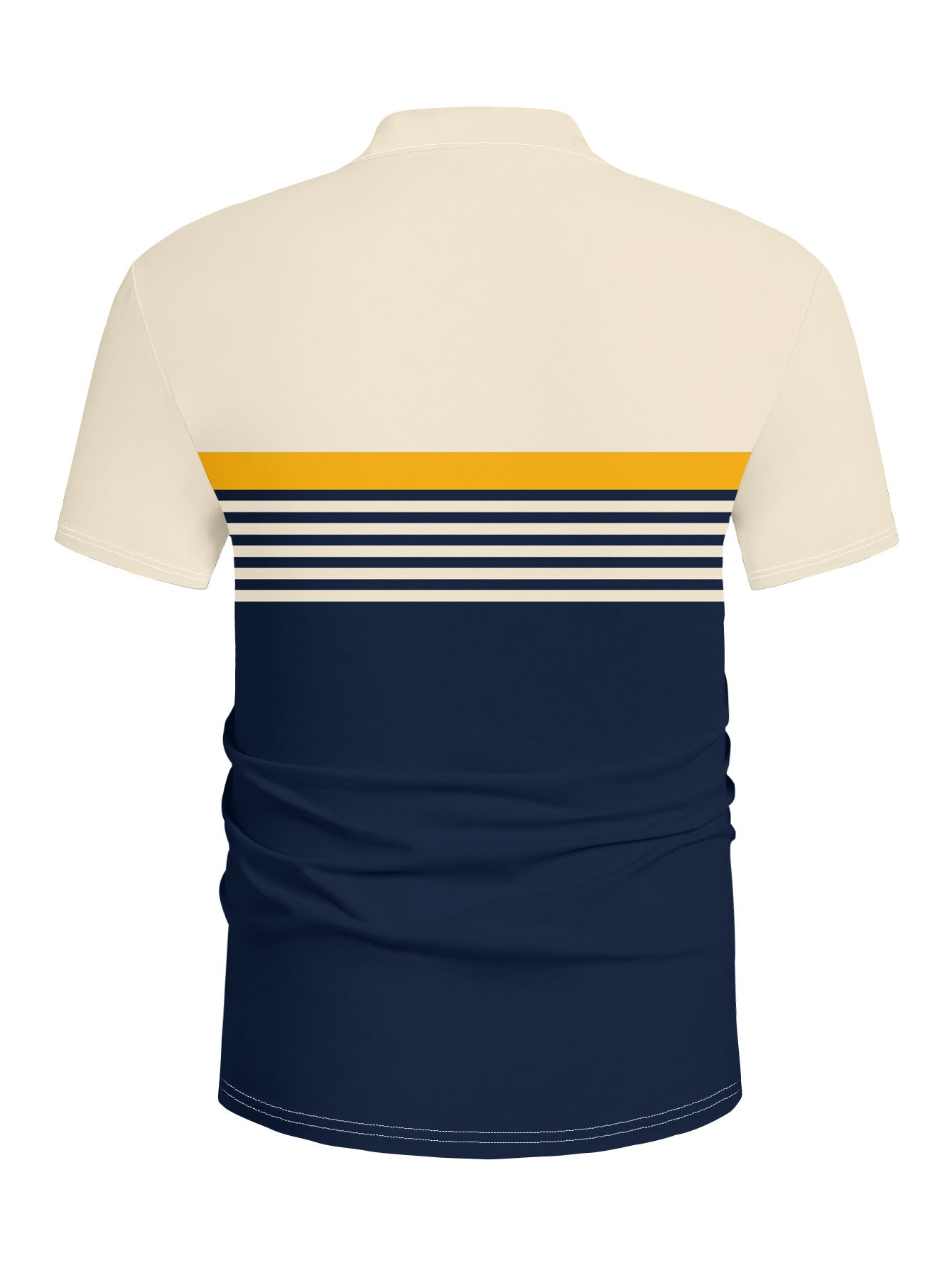 2 csomagos férfi hétköznapi rövid ujjú pólóingek, 3D lómintás, színes csíkok, sportos stílus, könnyű poliészter szövet, gombolható golfpóló