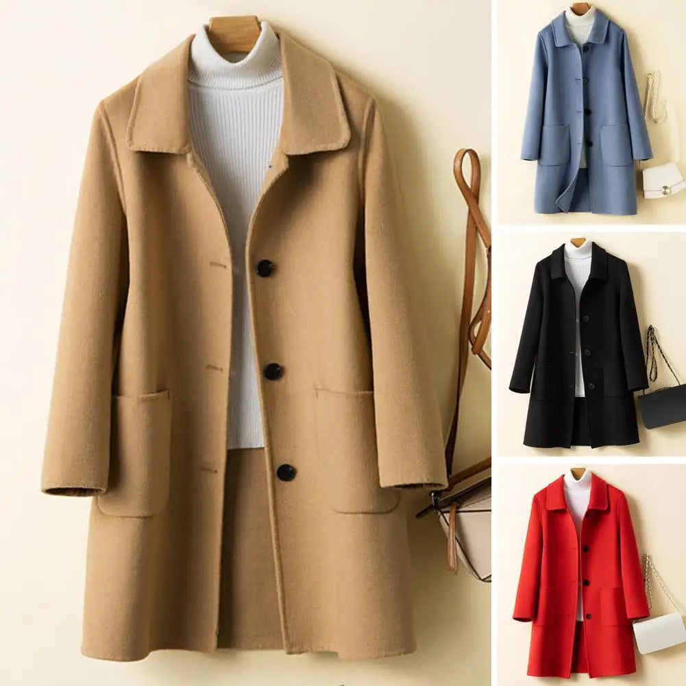 Ravikna | Egyszínű, hosszú ujjú, gyapjúkabát