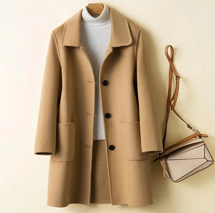 Ez a hosszú ujjú gyapjúkabát elöl elegáns gombokkal van befejezve, ahol a melegség találkozik a stílussal.