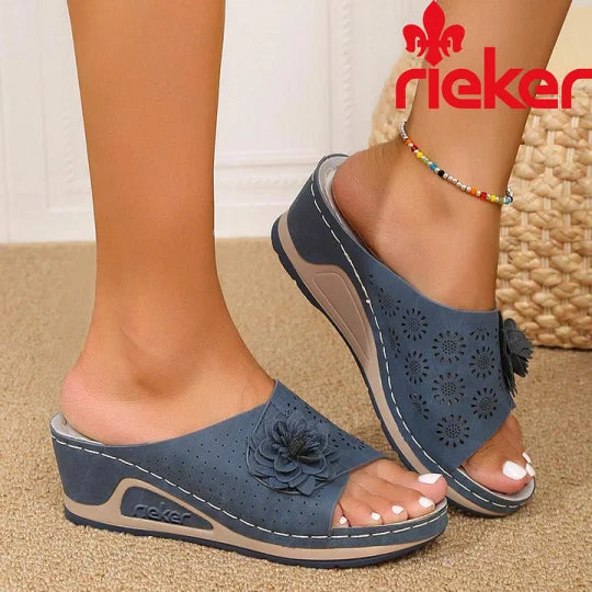 Rieker® Női Flip Flop ortopéd szandál nyárra Kézzel készített női sétáló szandál párnázott talpbetéttel Ék szandál kényelmes ívtámasz védelemmel a talpi fasciitis ellen Ezek a szandálok vonzó hétköznapi szandálok, amelyek a játékos részleteket párnázott járási kényelemmel ötvözik!