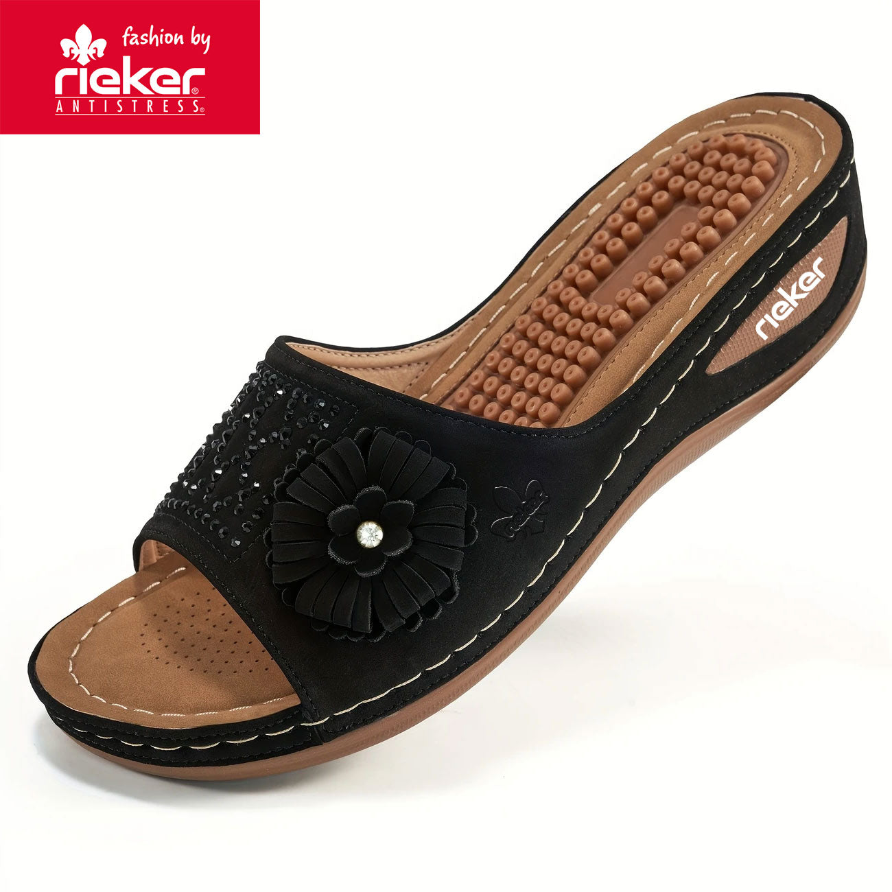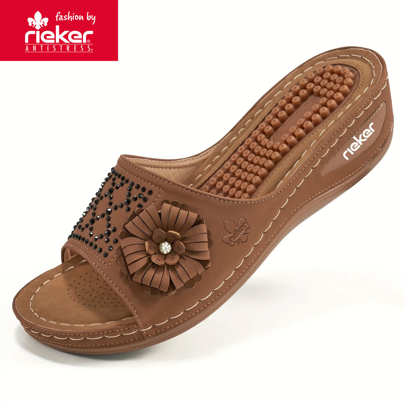Rieker, nyári új női ortopéd ékszandál virágmintával 2025-től
