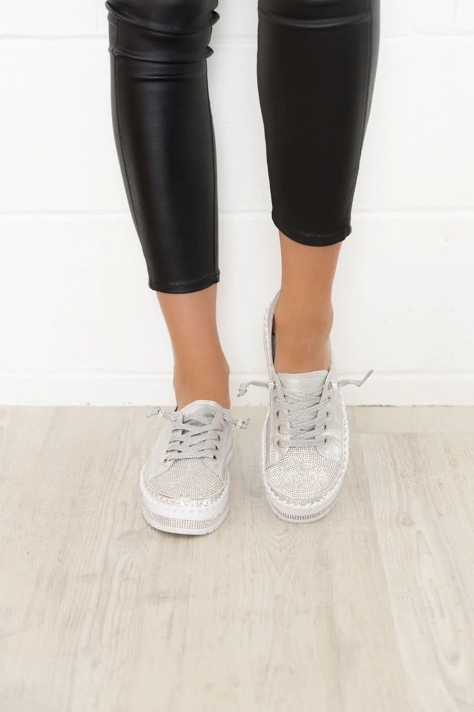 Kristályezüst bőr tornacipők - 50% kedvezmény korlátozott ideig
