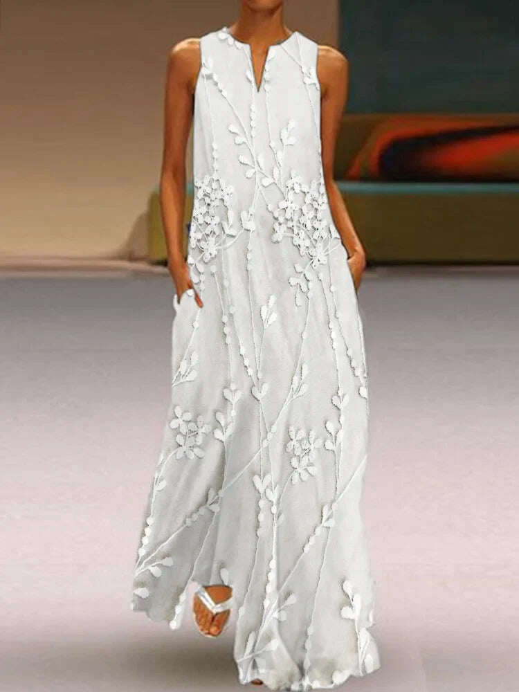 Elegáns és lendületes hosszú ruha virágokkal hímzett csipkével