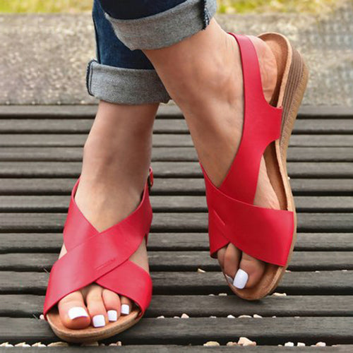 Női ívtámasz, alkalmi platform bokapántos bőrszandál