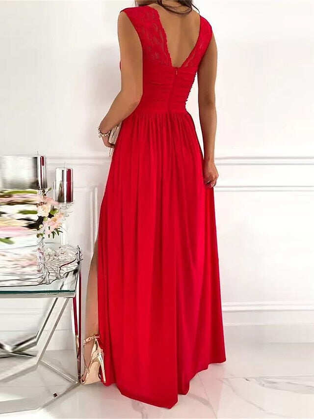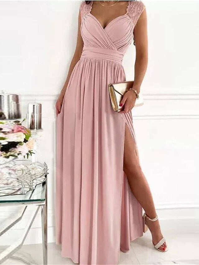Nem: Nők , Stílus: Buli , Divat , Kifinomultság , Elegáns ruha , Fesztiválruha , Alkalom: Esküvői Vendég , Strand , Különleges alkalom , Születésnap , Kirándulás , Karácsony , Nyaralás , Este , Nyaralás , Ruha típusa: Swing ruha , Parti ruhák fekete ruha , piros ruha , rózsaszín ruha , báli ruha , esküvői vendég ruha , estélyi ruha , nyakkivágás: V-nyakú , szövet: poliészter , minta: csipke , hasíték , redők , rugalmasság: mikro sztreccs , minta: egyszínű , évszak: ősz , ősz , tél , tavasz , szabás típusa: normál szabás , ruha hossz típusa: maxi ruha, maxi ruha ,