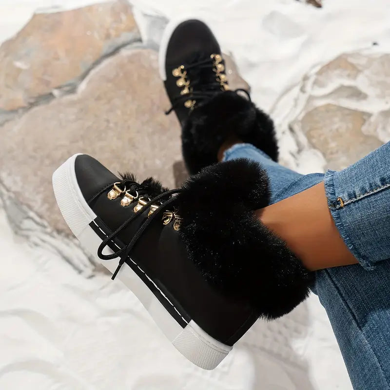 Trwałe, grube futrzowe, losowane, izolowane czerwono-syntetyczne, sznurkowe koronkowe buty śniegu zimowe