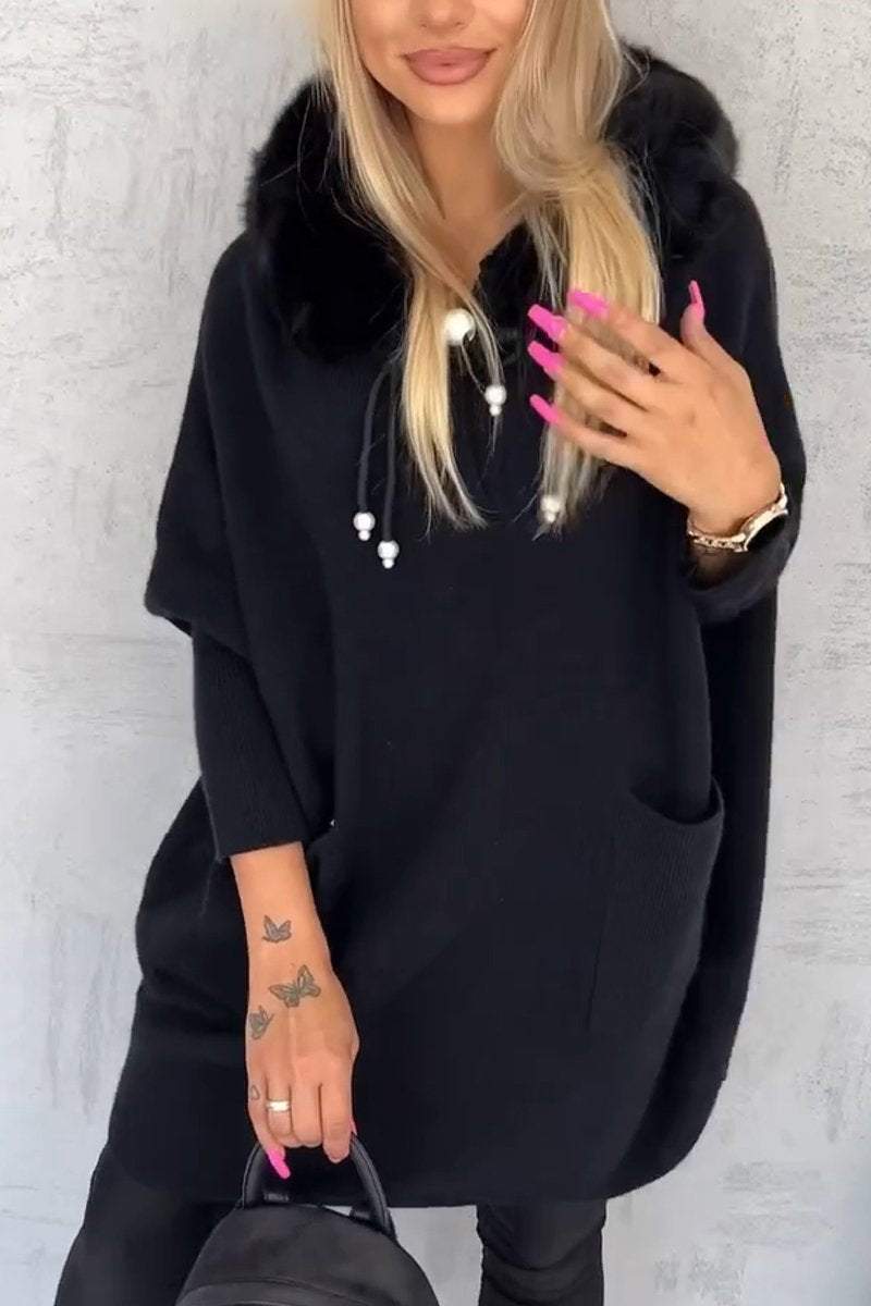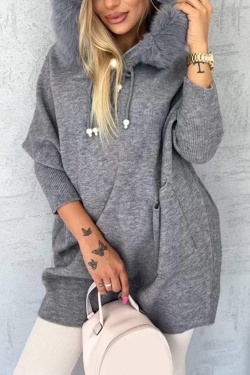 Női mindennapi pulóver hosszú ujjal és kapucnival