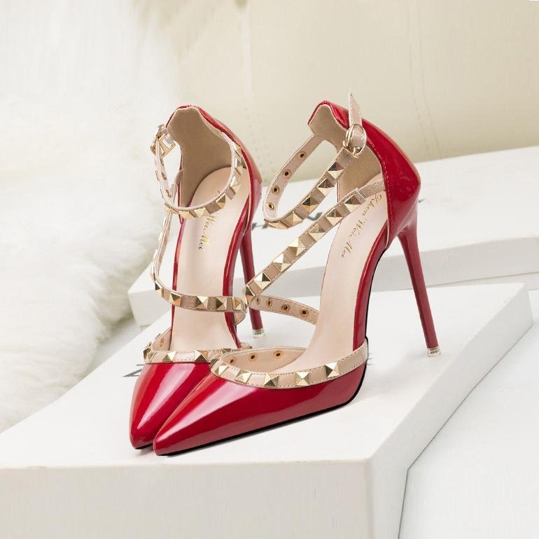 Női hegyes orrú szandál tűsarkúval és szegecses menyasszonyi cipővel bulikra💞