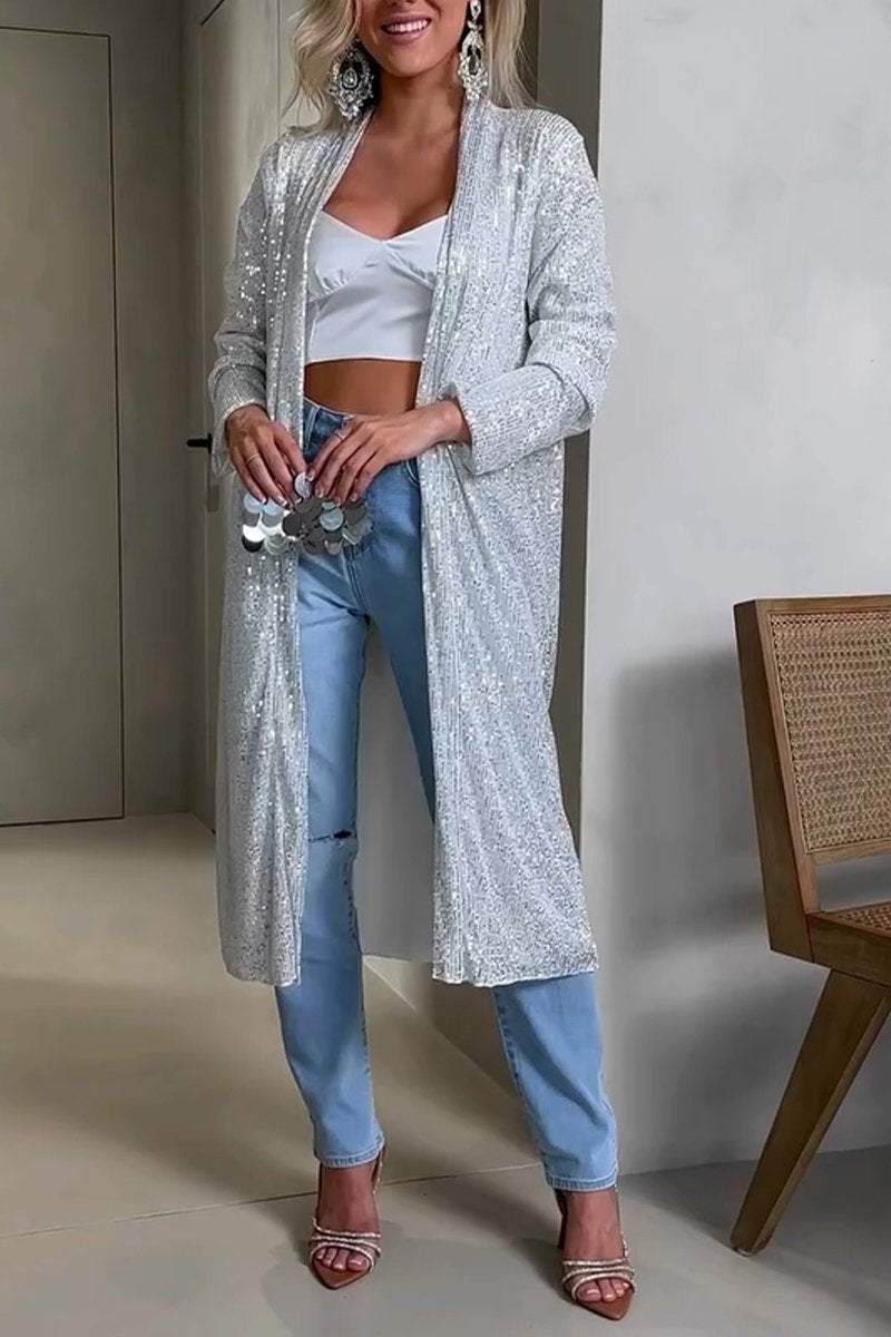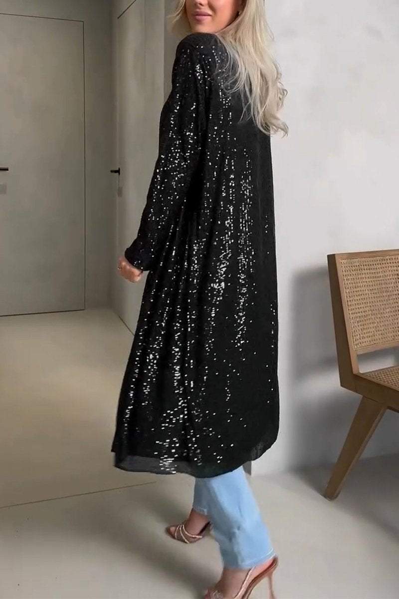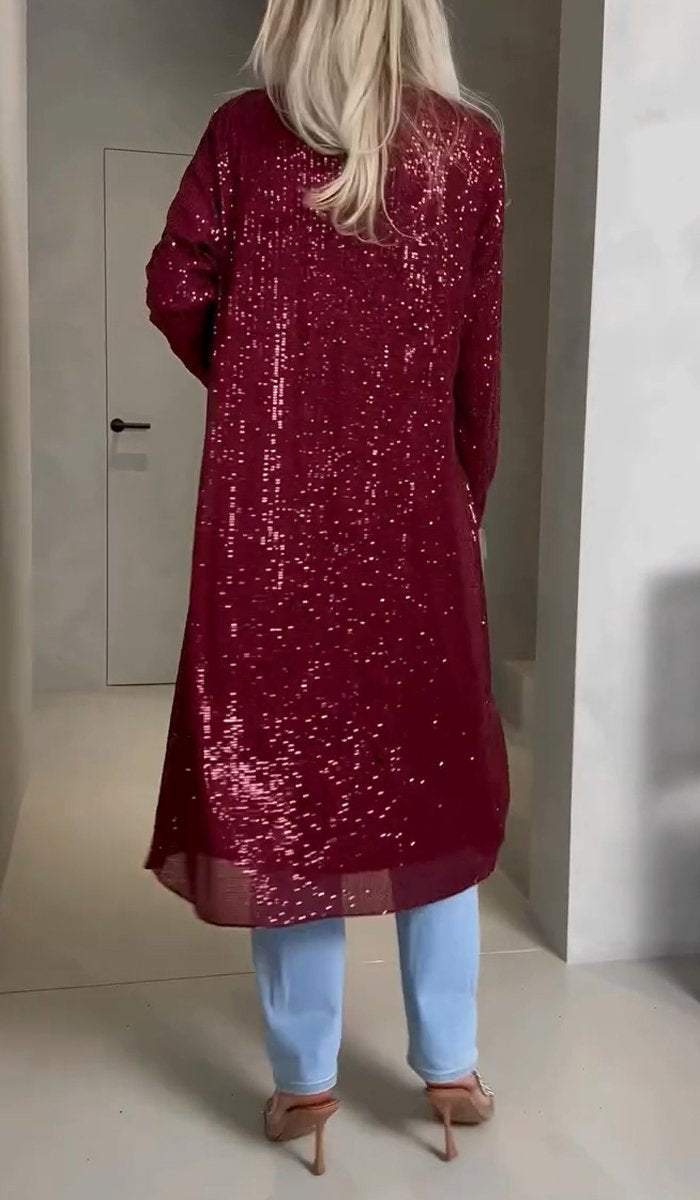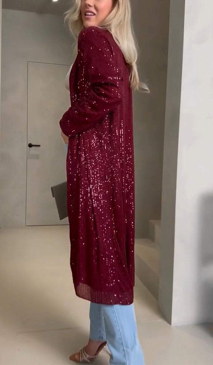 Divatos női kardigán kabát V-nyakkal és flitterekkel
