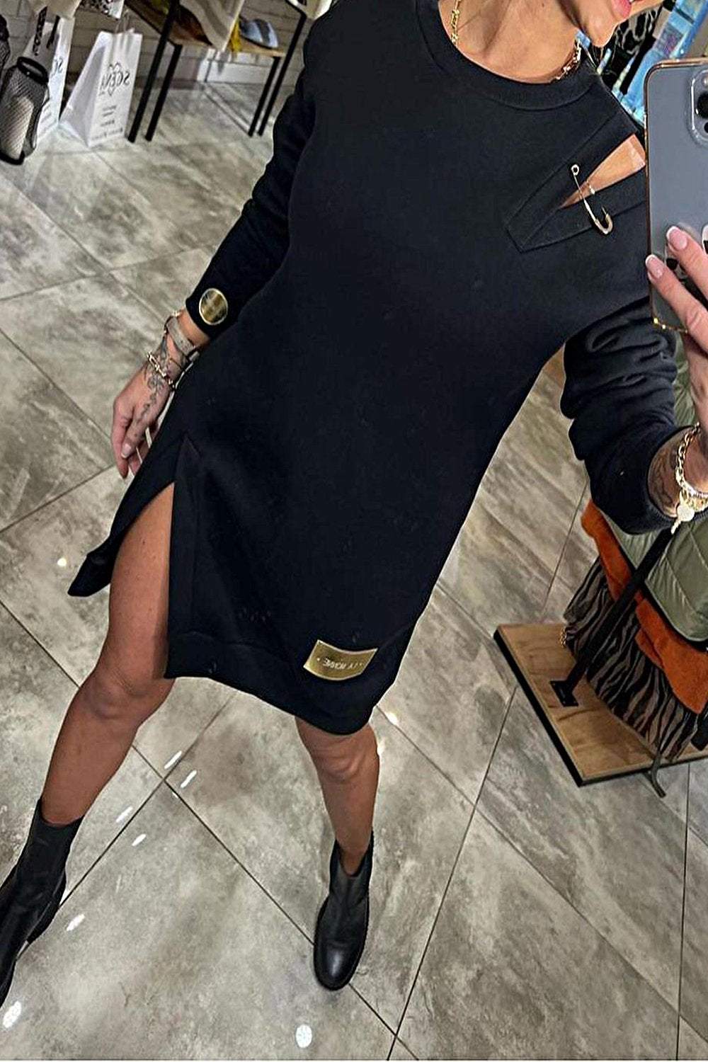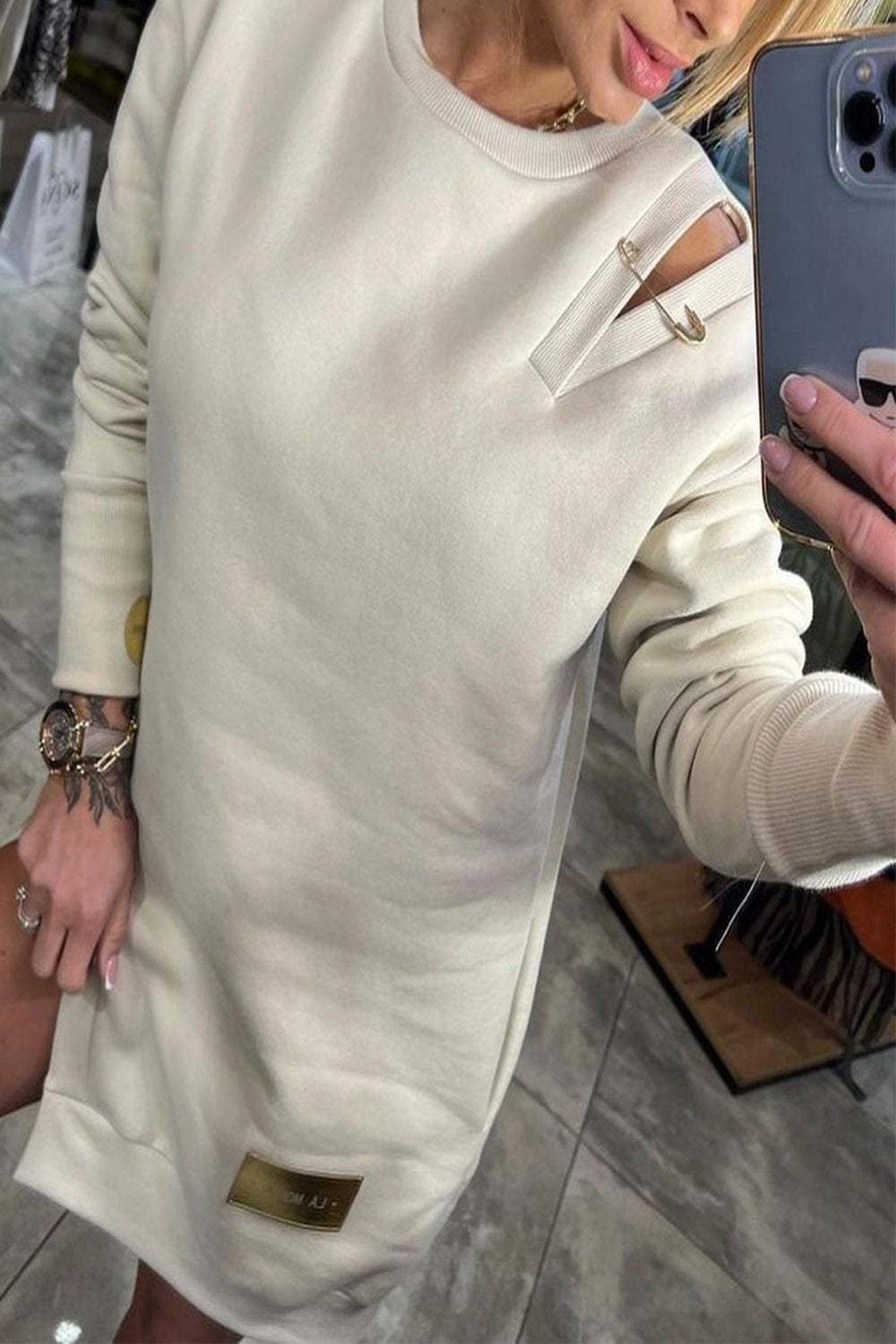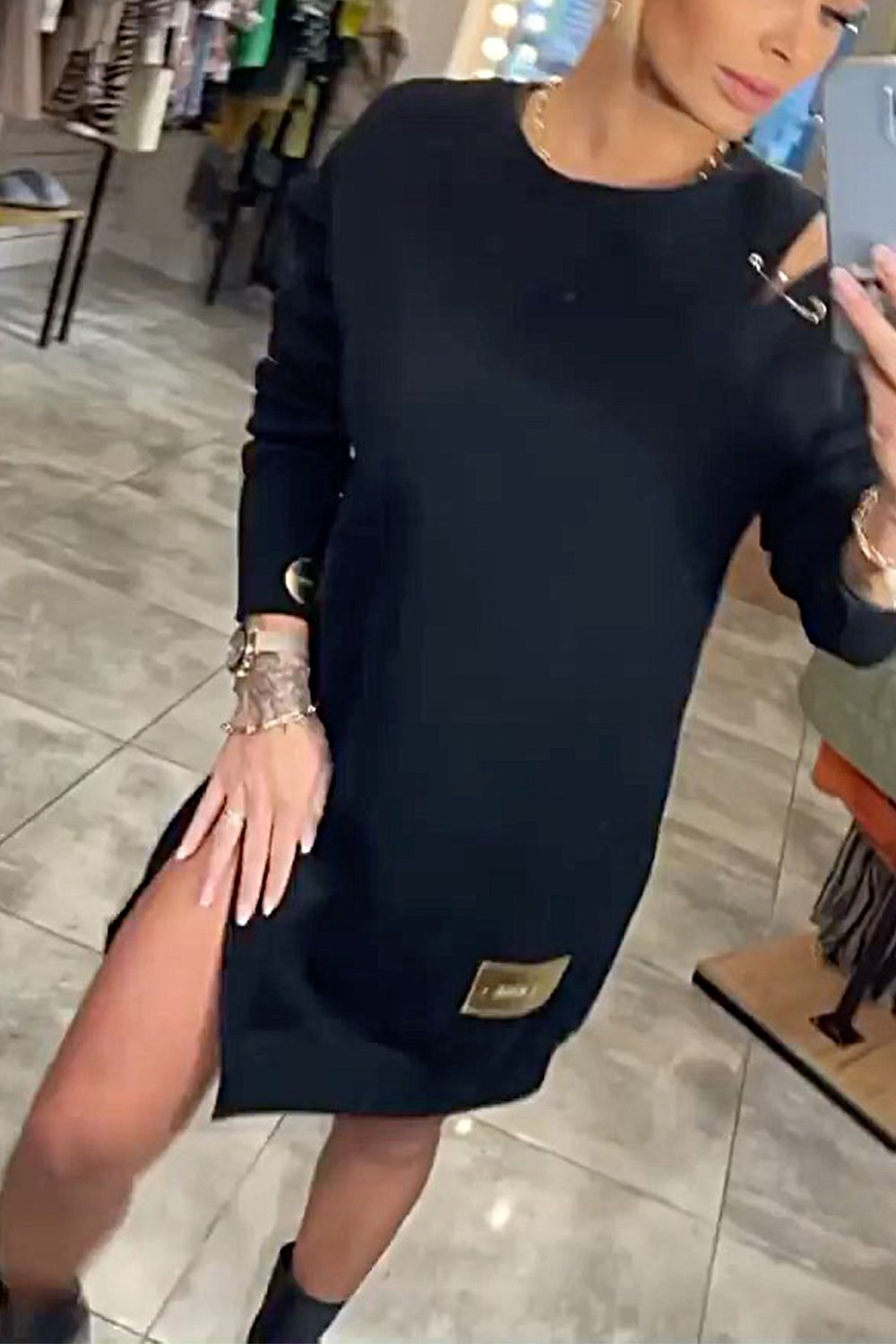 Női váll nélkül kötött pulóver ruha
