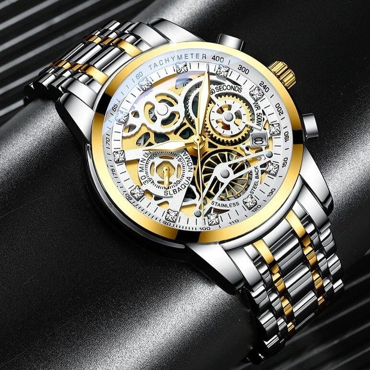 - Ez a nagyon elegáns Magnus Vanir a legjobb anyagokból készült. A fényes burkolat szemet gyönyörködtető részletekkel arany és ezüst rozsdamentes acélból készült.